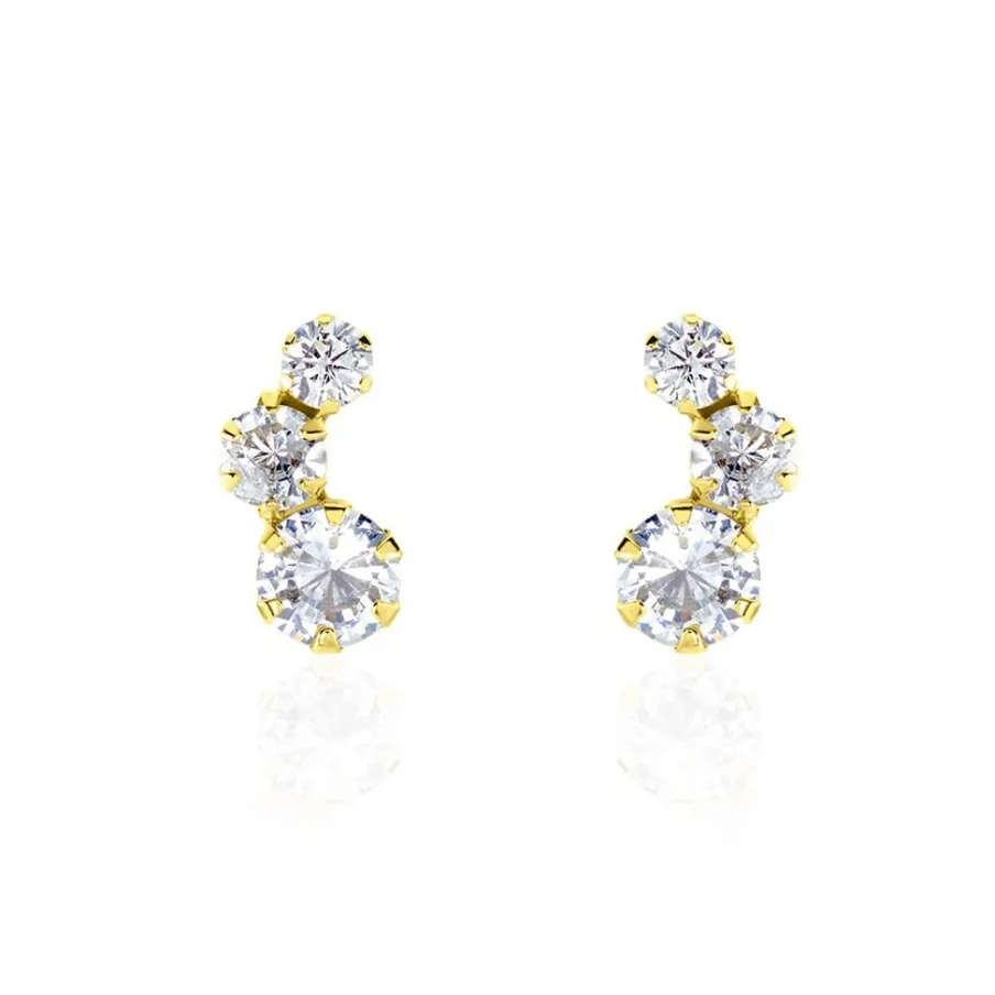 Boucles D’oreilles Puces Or Jaune 375/1000 Barrettes Oxydes De Zirconium