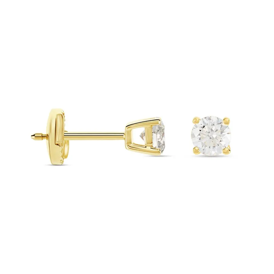 Boucles D’oreilles Or Jaune 750/1000 Puces Diamants 0.50cts Sertis 4 Griffes