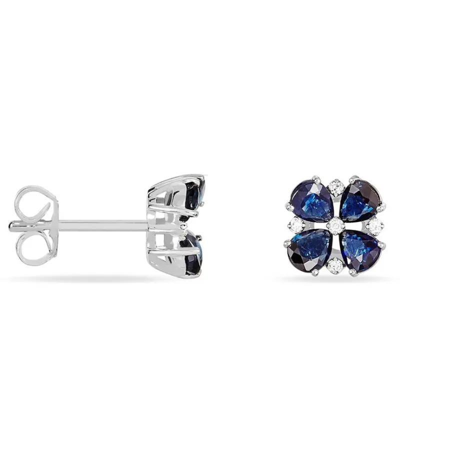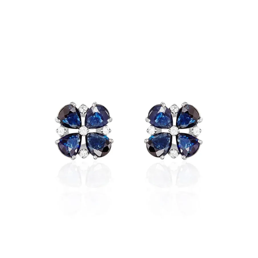Boucles D’oreilles Or Blanc 375/1000 Fleurs Saphirs Et Diamants