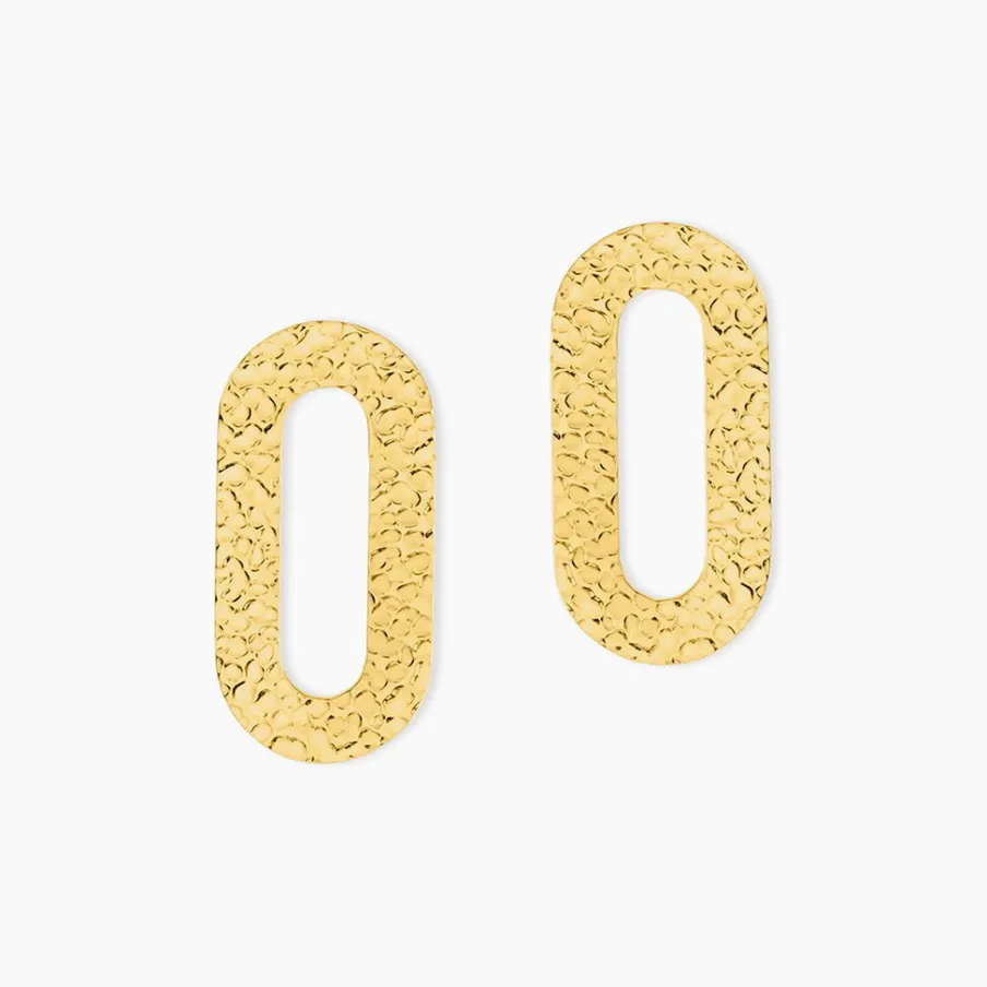Boucles D’oreilles Pendantes Acier Inoxydable Jaune Ovales Ajourees Martelees