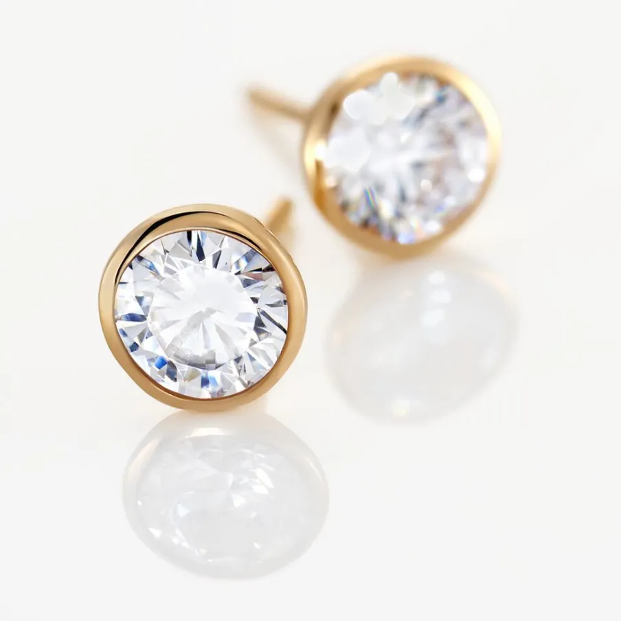 Boucles D’oreilles Puces Plaqué Or Jaune Oxydes De Zirconium Blancs Sertis Clos