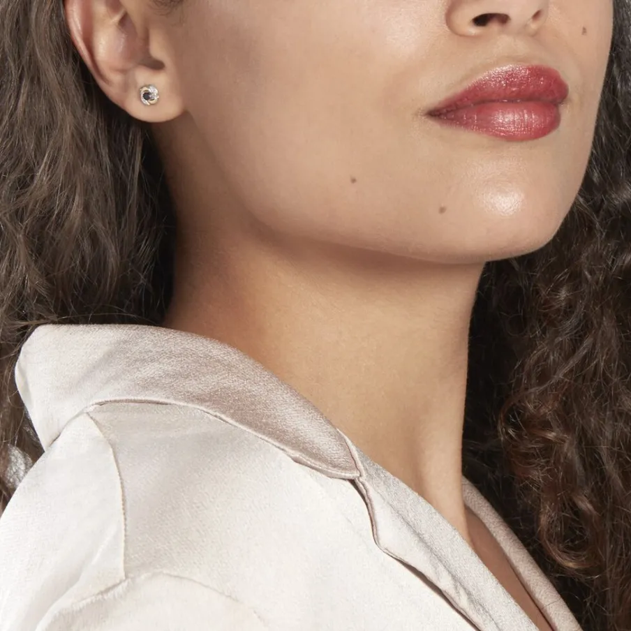 Boucles D’oreilles Puces Or Bicolore 375/1000 Fleurs Saphirs