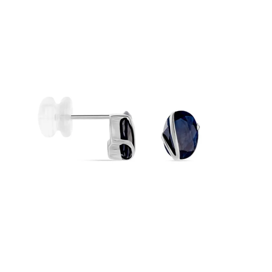 Boucle D’oreille Or Blanc 375/1000 Saphir Bleus Ovale