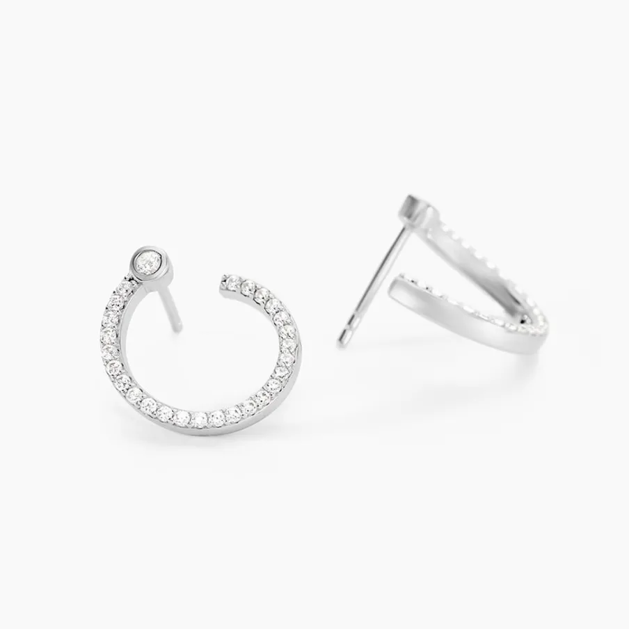 Boucles D’oreilles Puces Argent Blanc 925/1000 Cercles Oxyde De Zirconium Serti Clos Et Pavage