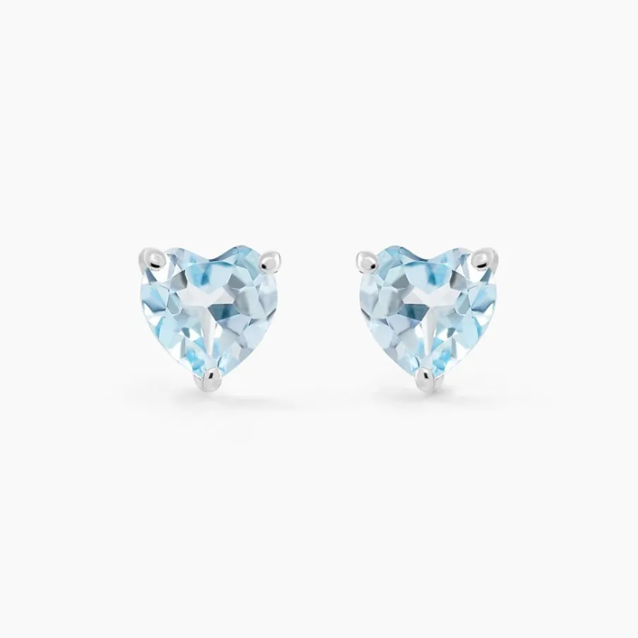 Boucles D’oreilles Or Blanc 375/1000 Topazes Bleues C艙urs