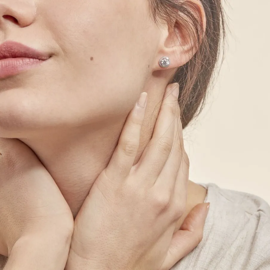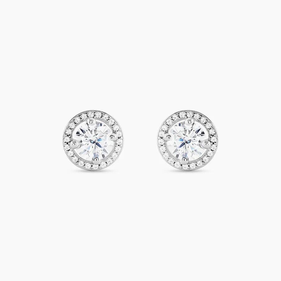 Boucles D’oreilles Puces Or Blanc 375/1000 Oxydes De Zirconium Gm