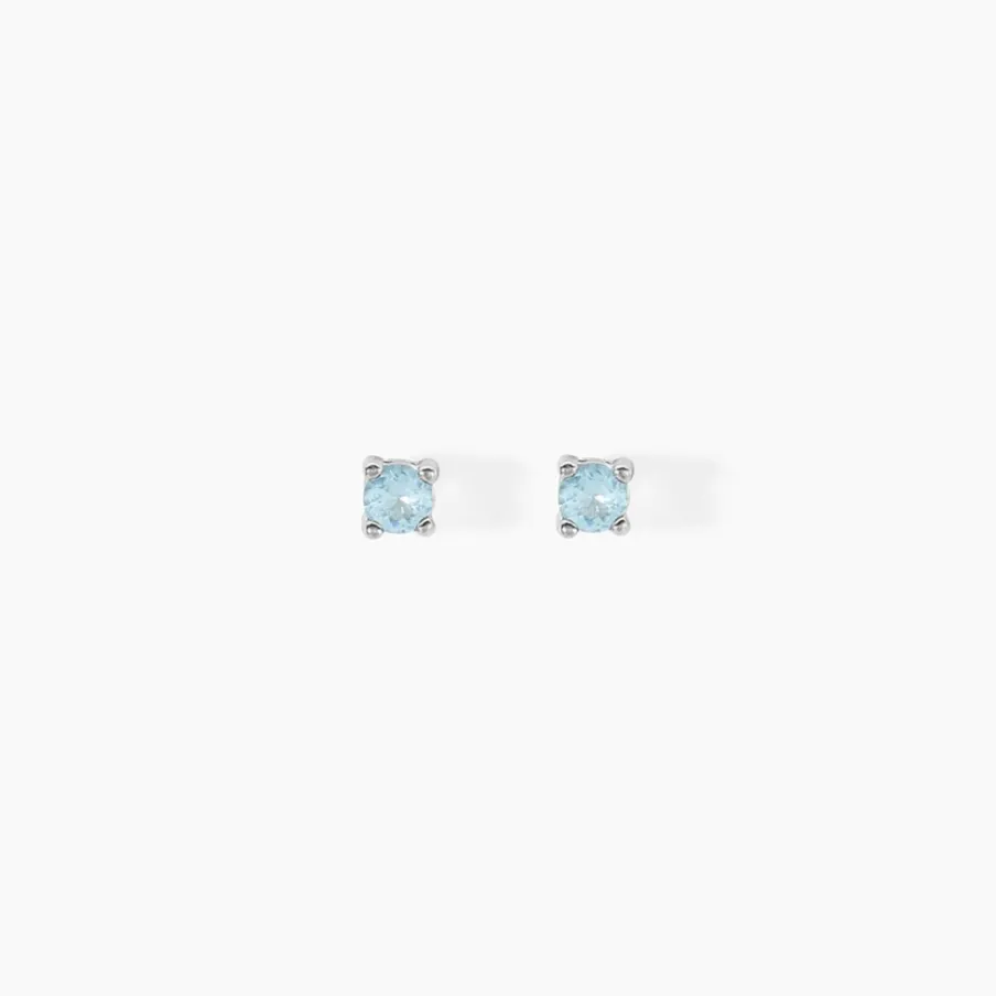Boucles D’oreilles Puces Argent Blanc 925/1000 Verres Bleus Serti 4 Griffes