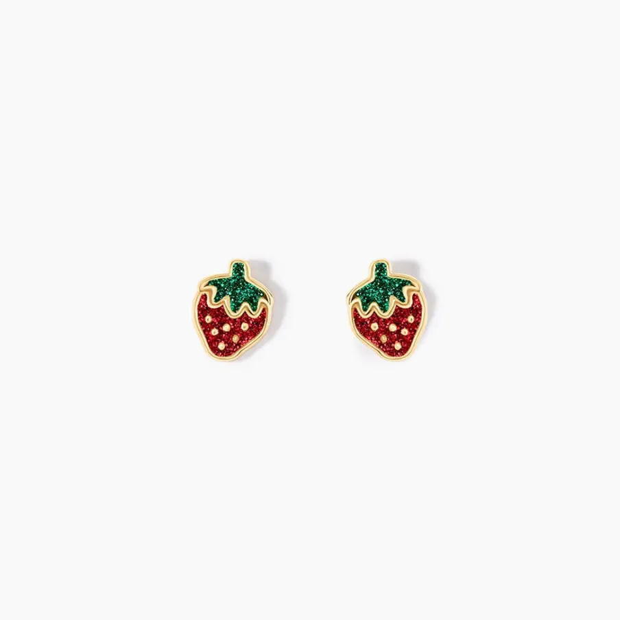 Boucles D’oreilles Or Jaune 375/1000 Motif Fraise 14cm