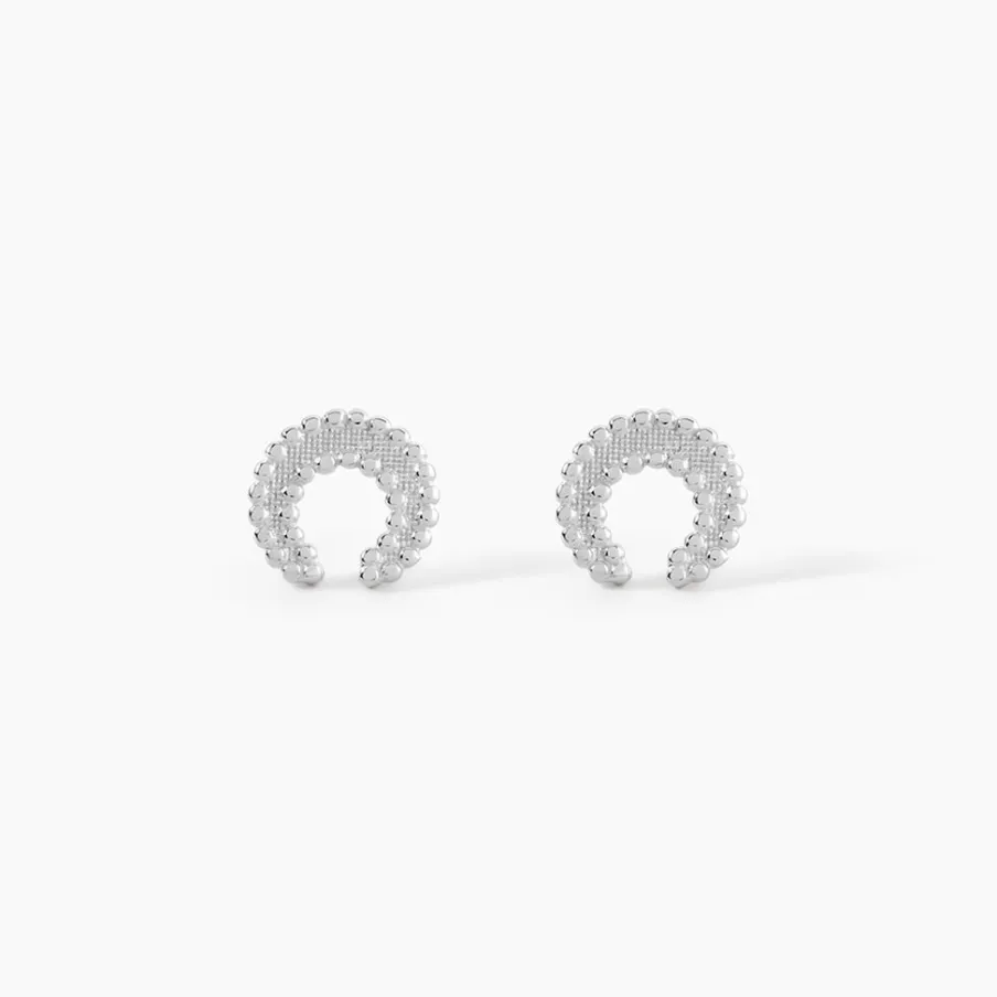 Boucles D’oreilles Puces Argent Blanc 925/1000 Cornes Effet Mate Et Perle