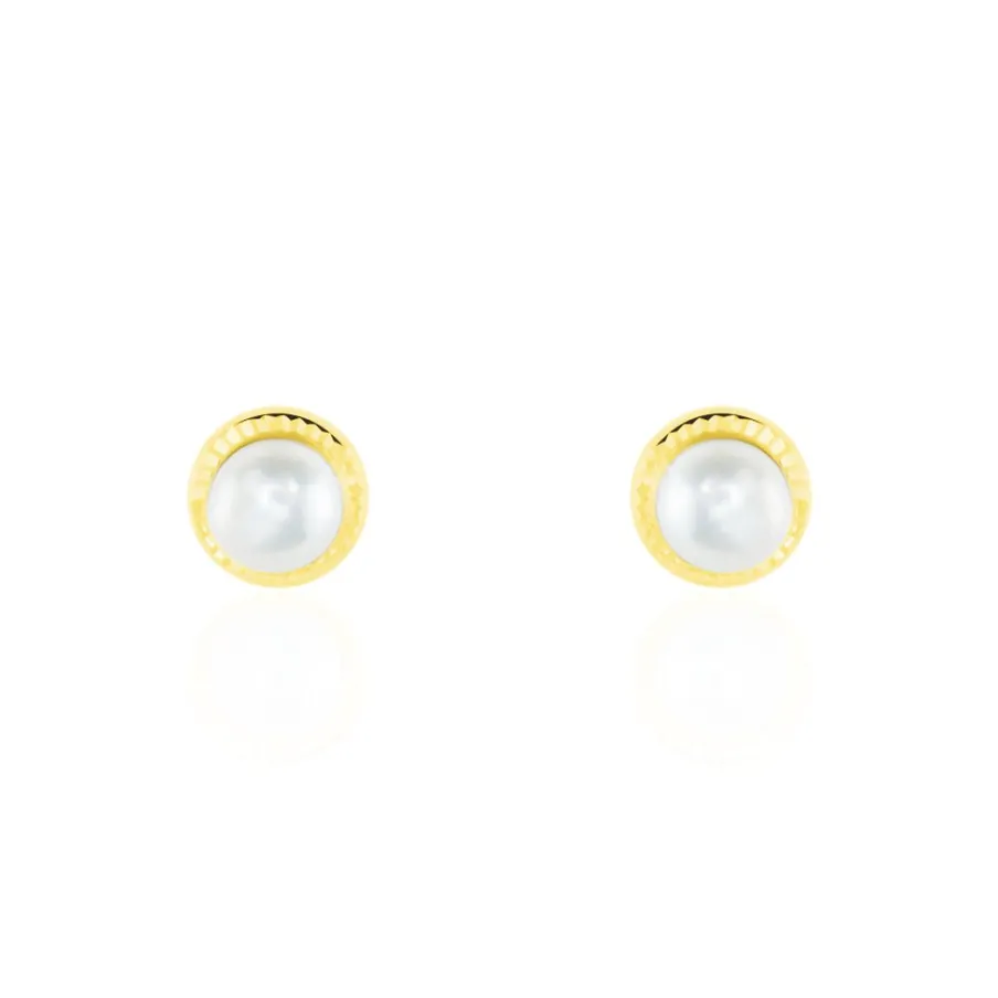 Boucles D’oreilles Or Jaune 375/1000 Puces Perles De Culture Contour Diamante