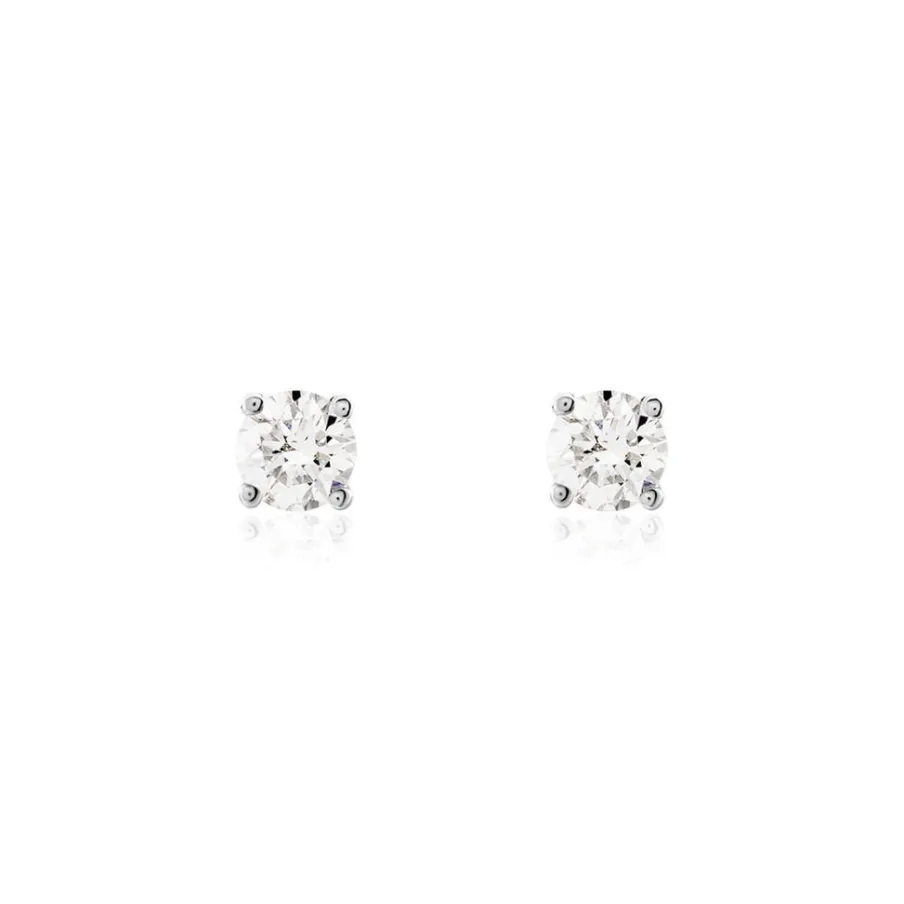Boucles D’oreilles Platine 950/1000 Puces Diamants 0.30cts Sertis 4 Griffes Systemes Alpas