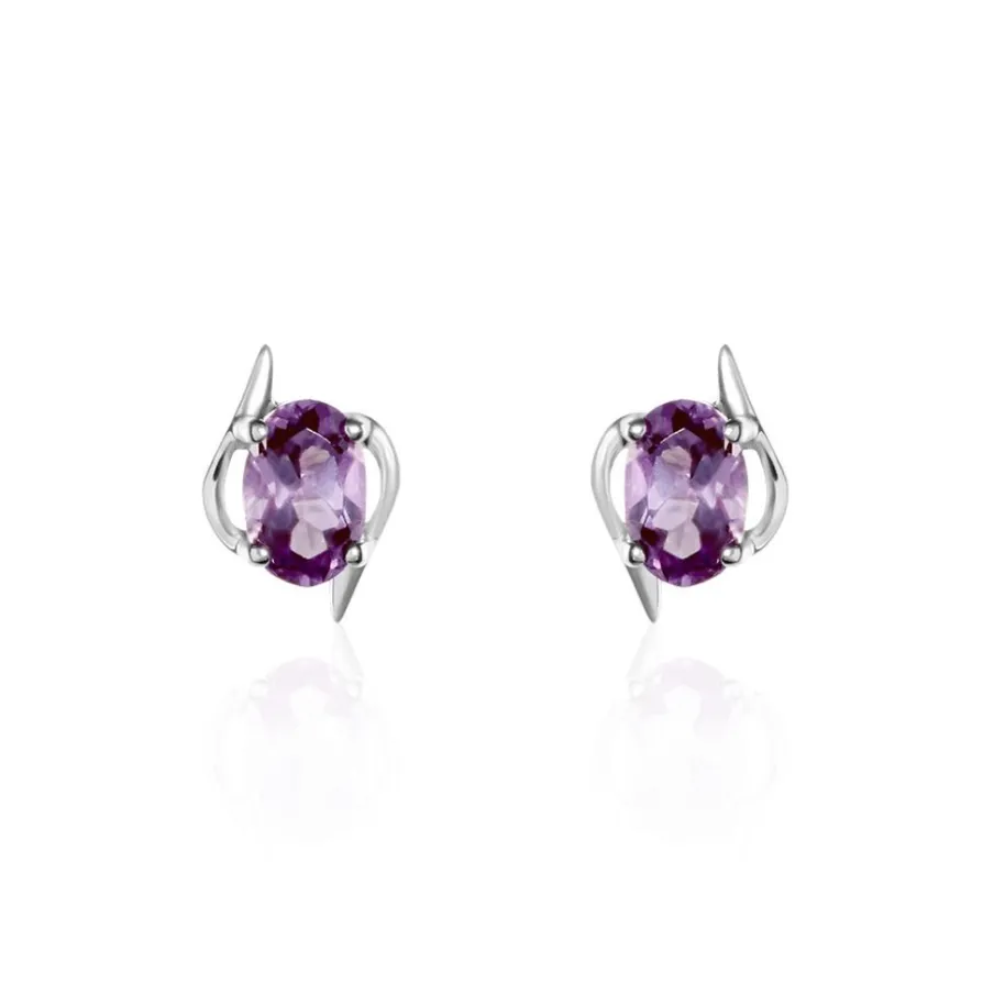 Boucles D’oreilles Or Blanc 375/1000 Améthystes Ovales Serti Griffes