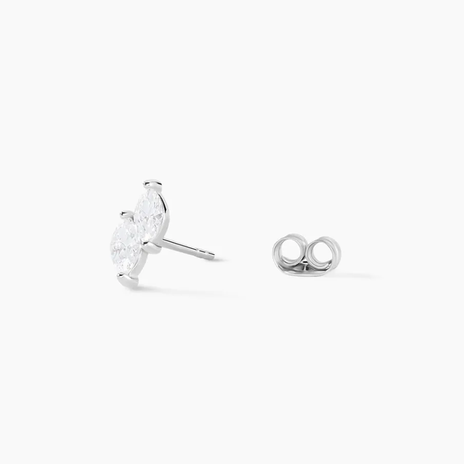 Boucles D’oreilles Puces Argent Blanc 925/1000 Oxydes De Zirconium Taille Navette Serti Griffes
