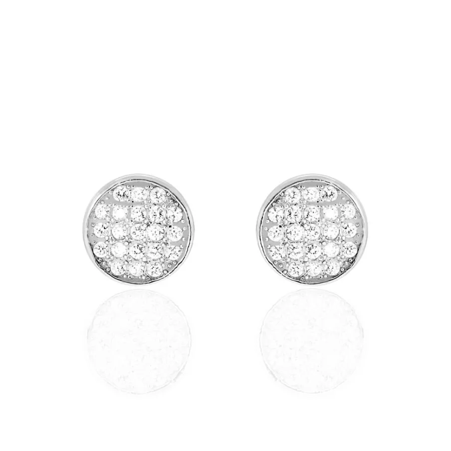 Boucles D’oreilles Puces Argent Blanc 925/1000 Forme Pastille Pavage Oxydes De Zirconium