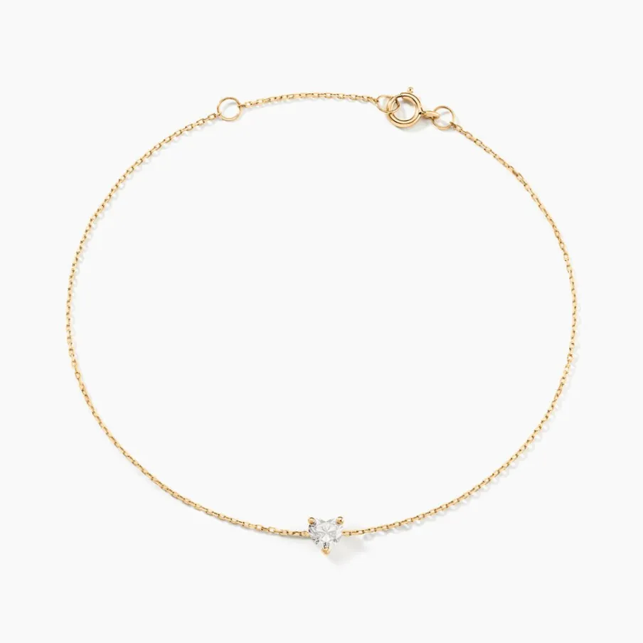 Bracelet Or Jaune 375/1000 Oxyde De Zirconium C艙ur 4mm 18cm