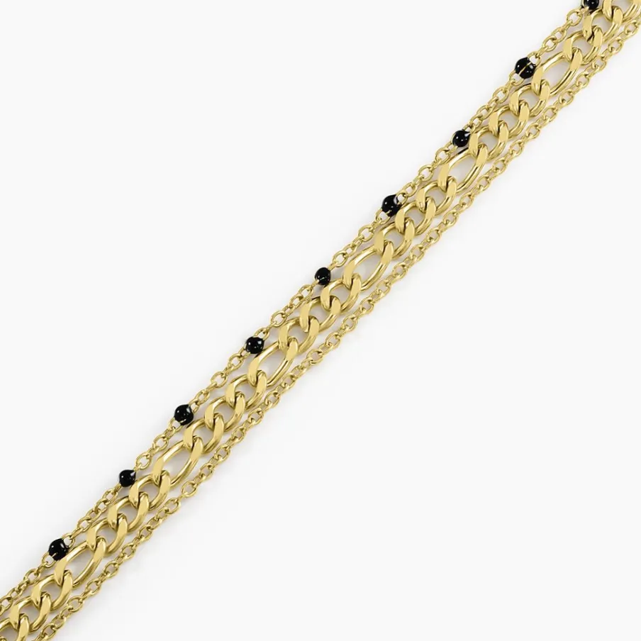Bracelet Acier Inoxydable Jaune Email Noir Triple Chaînes Mailles Alternée 1/3 Et Fantaisies 19cm