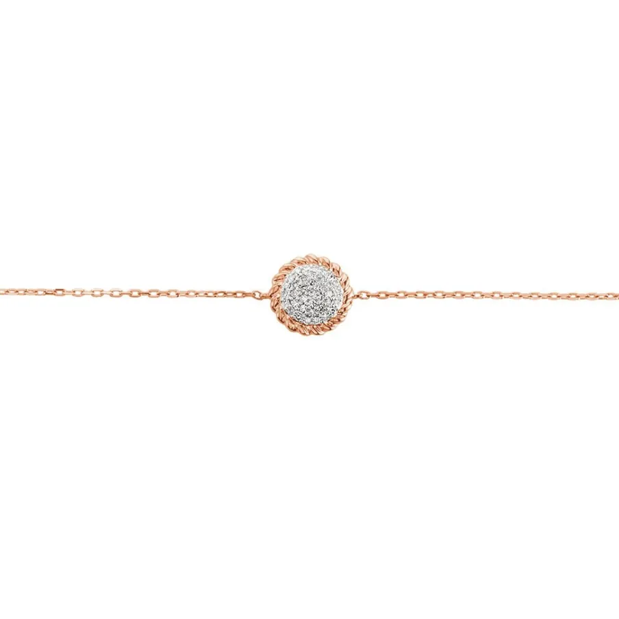 Bracelet Or Rose 375/1000 Forme Cercle Effet Perle Pavage Diamants 18.5cm