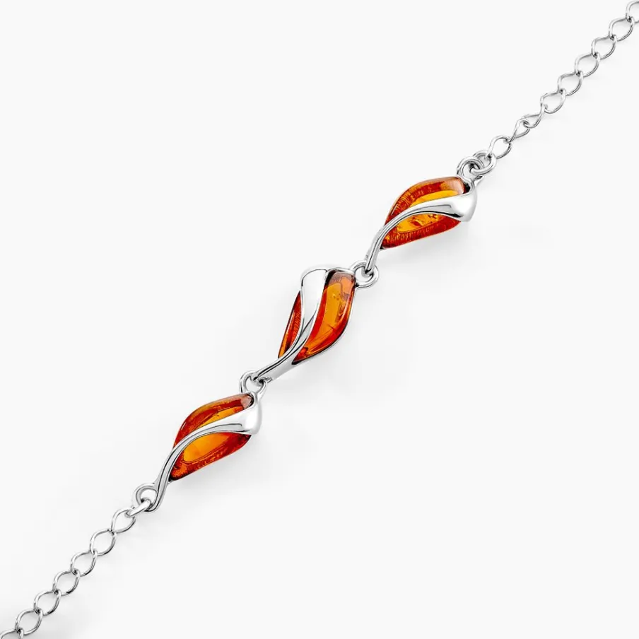 Bracelet Argent Blanc 925/1000 Eve-liseae’ Ambre Motifs Ovales Triples 18+3cm