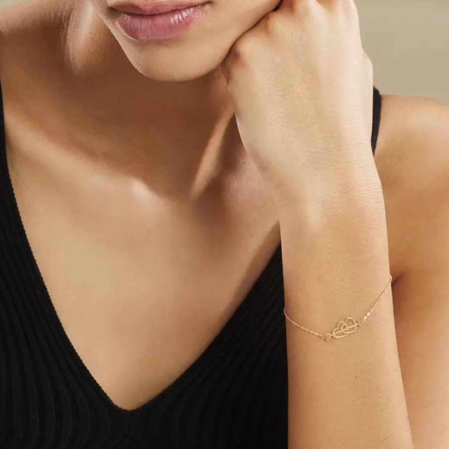 Bracelet Or Jaune 375/1000 Double C艙urs Ajoures Avec Fleche Maille Forcat 18cm