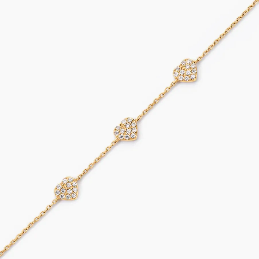 Bracelet Or Jaune 375/1000 Trilogie C艙ur Pavage Oxyde De Zirconium Maille Forcat 16+2cm