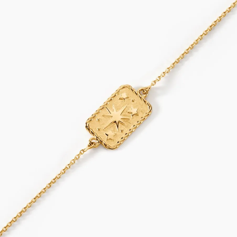 Bracelet Or Jaune 375/1000 Etoile Astrale Plaque Rectangle Maille Jaseron 16+2cm