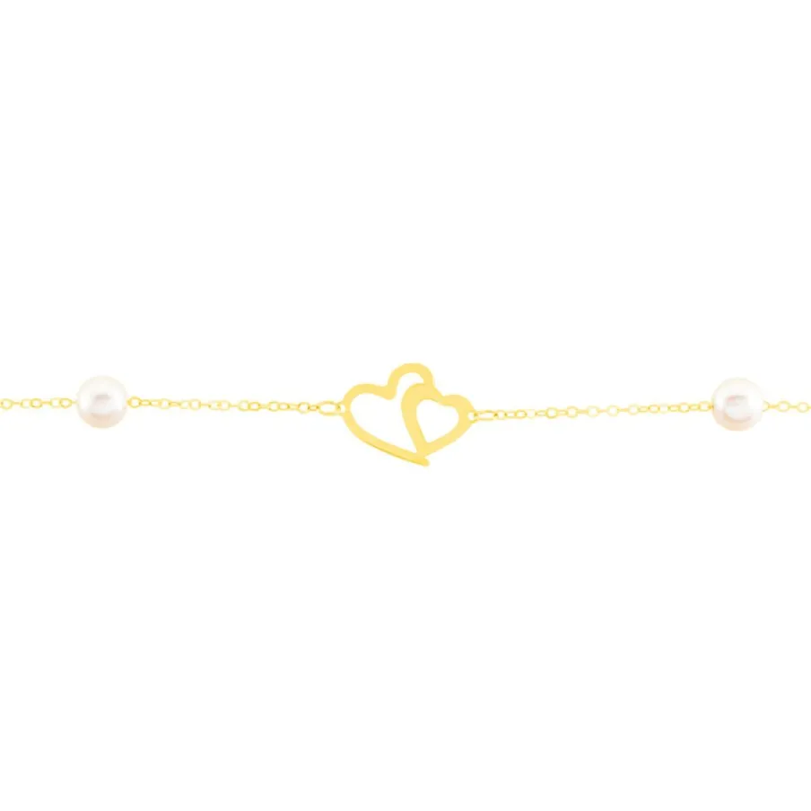 Bracelet Or Jaune 375/1000 Chaine Forçat Double C艙ur Perles De Culture 4.5/5mm 16+2cm