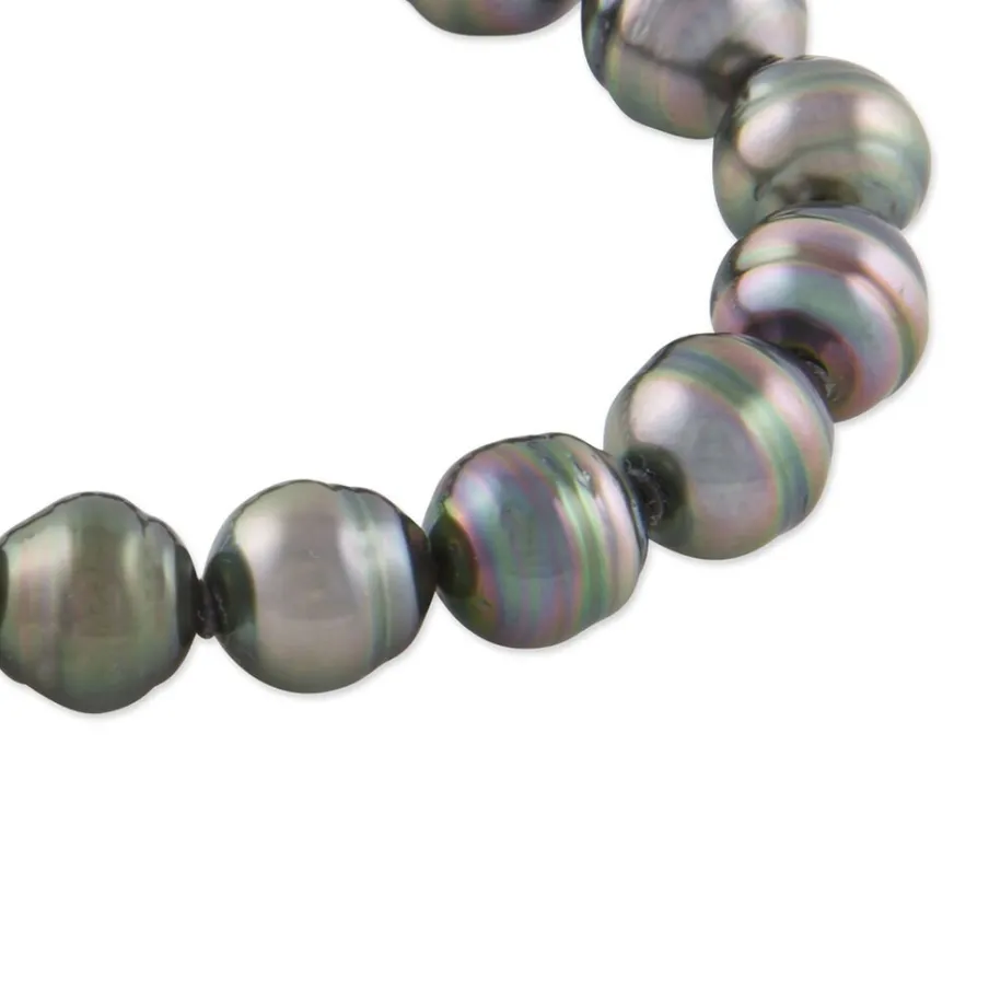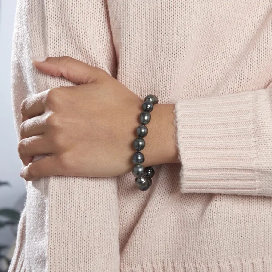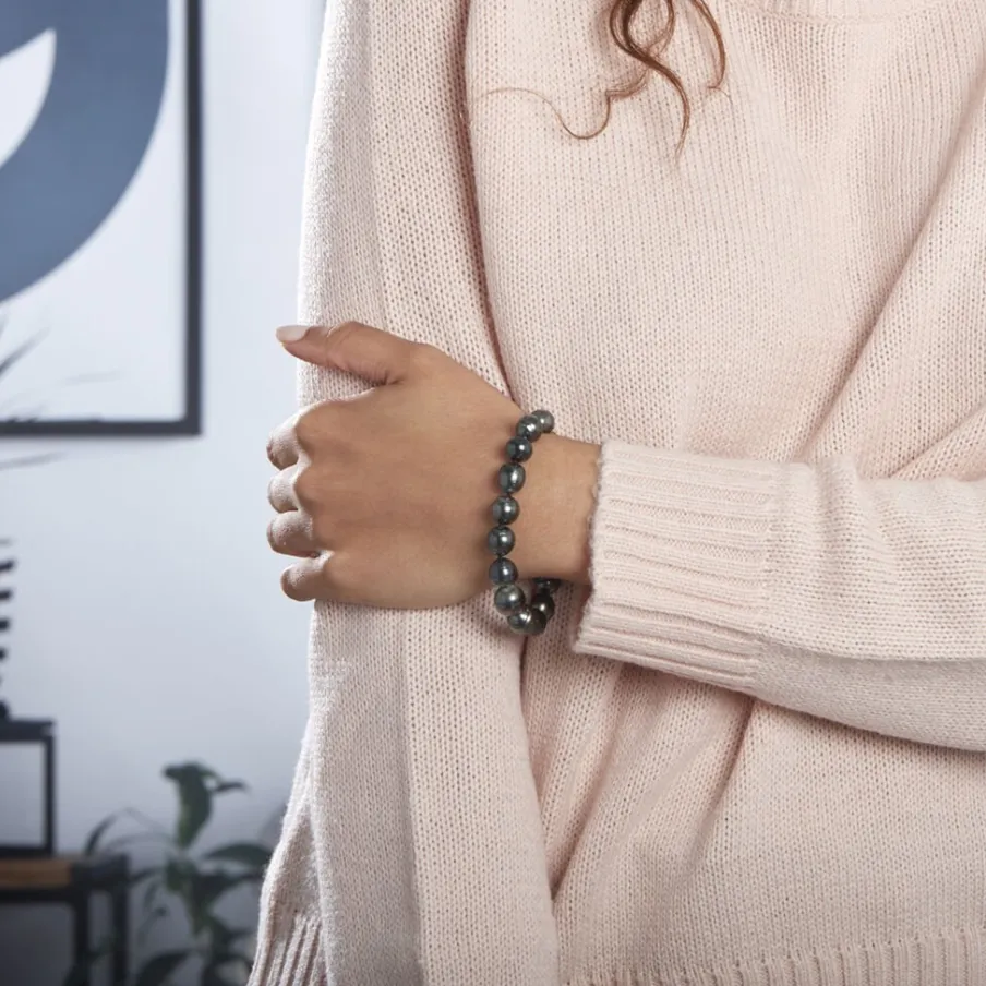 Bracelet Or Jaune 375/1000 Perle De Culture De Tahiti 8/11mm Cerclée 19cm
