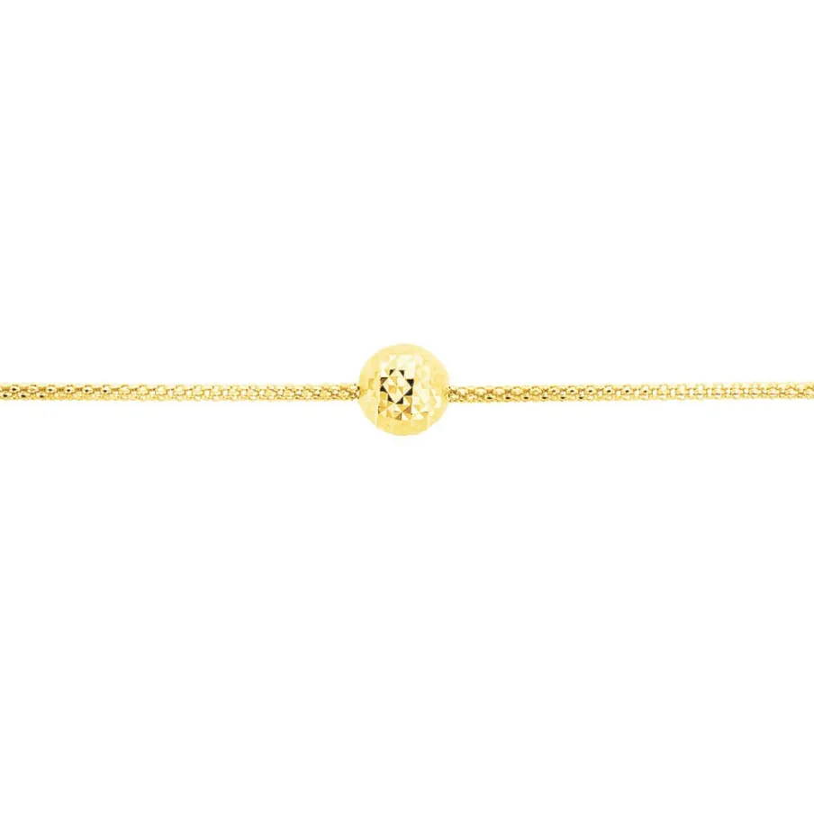 Bracelet Or Jaune 375/1000 Motif Boule Diamante Maille Pop Corn 18cm