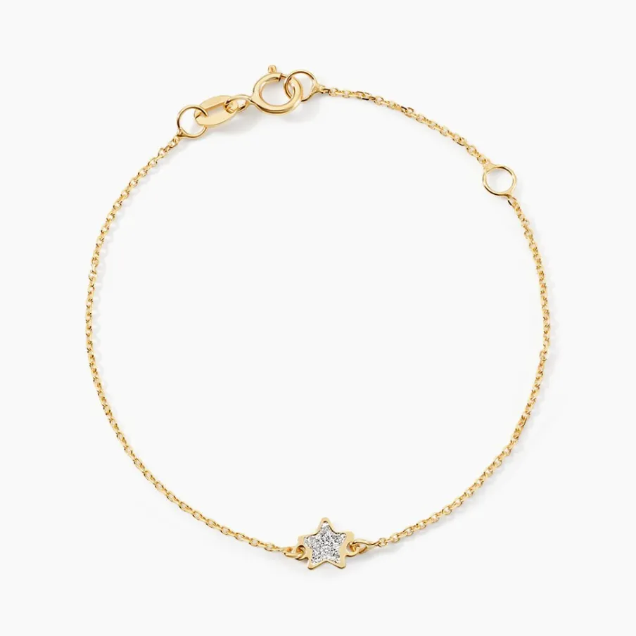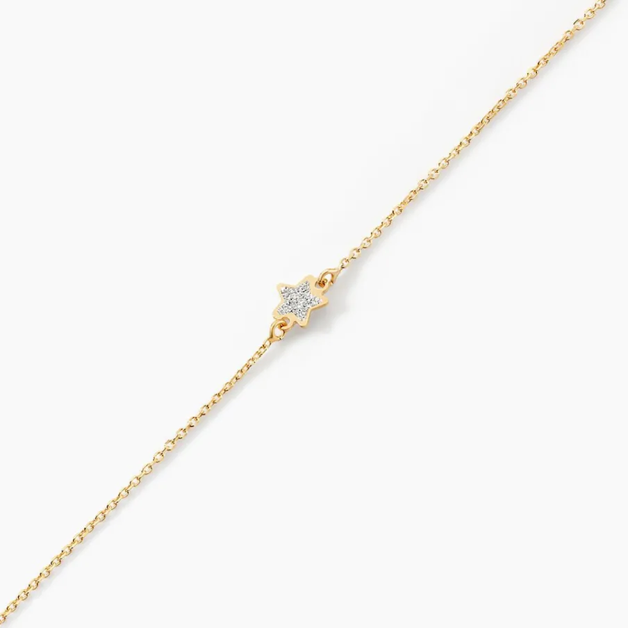 Bracelet Or Jaune 375/1000 Motif Etoile Glitter Silver Maille Jaseron 14cm
