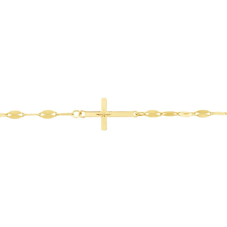 Bracelet Or Jaune 375/1000 Croix Avec Etoile Du Berger Maille Lumina 16+2cm