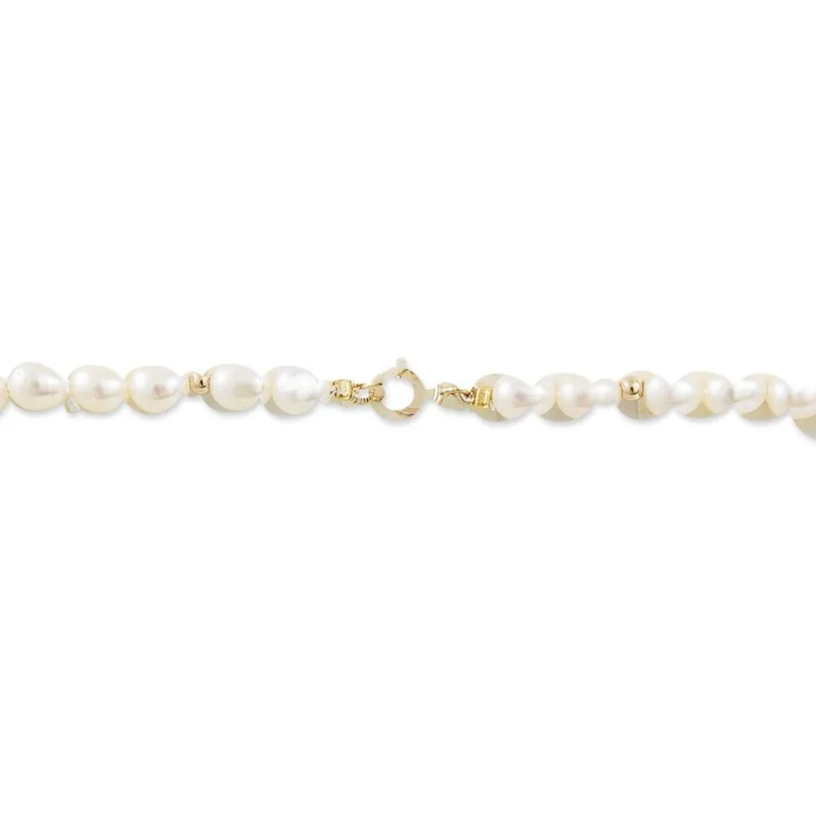 Bracelet Or Jaune 375/1000 Billes Or Et Perles De Cultures Grain De Riz Nacre 4.5/5mm 19cm