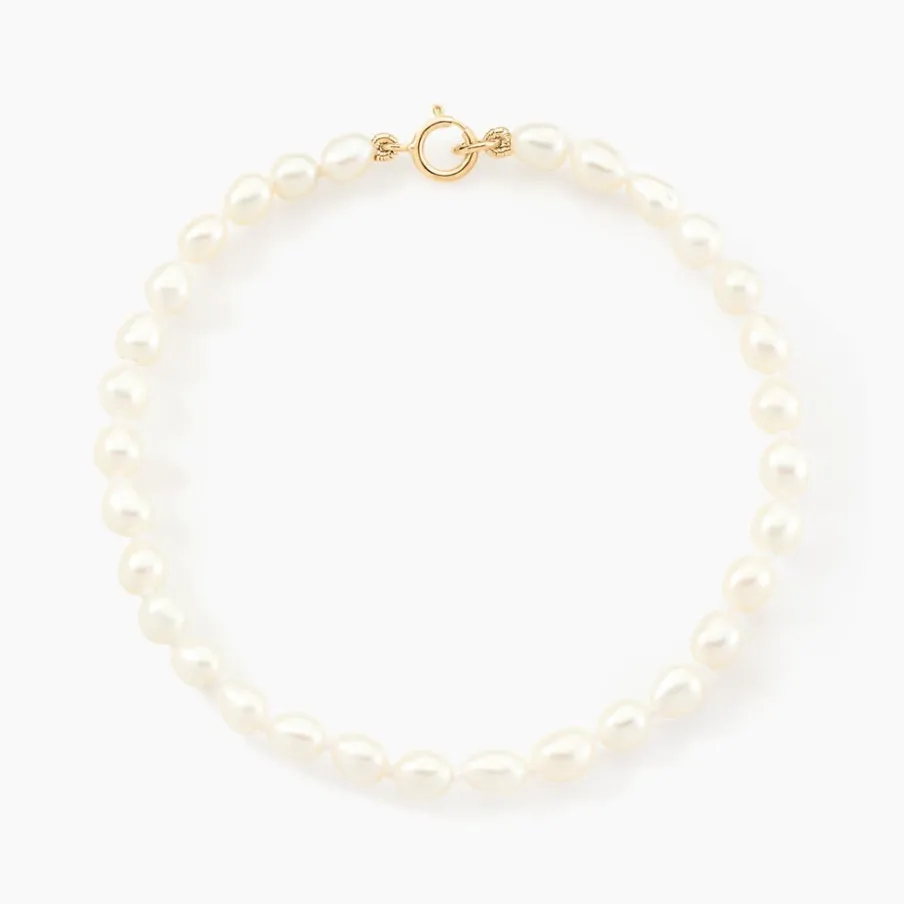 Bracelet Or Jaune 375/1000 Perles De Culture Grain De Riz 4.5/5mm 18cm