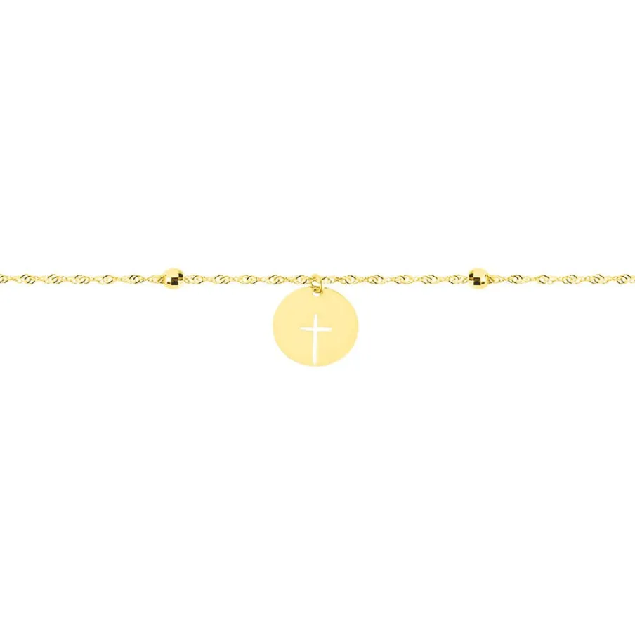 Bracelet Or Jaune 375/1000 Pastille Croix Ajourée Maille Forçat 18cm
