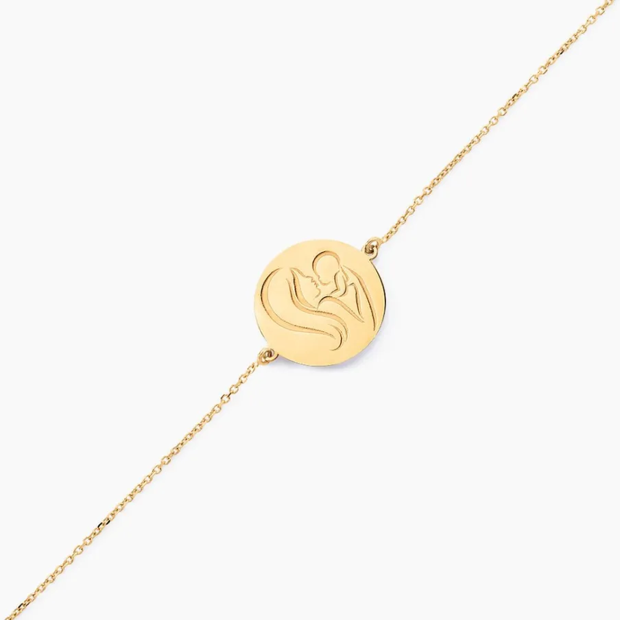 Bracelet Or Jaune 375/1000 Pastille Motif Maman Et Enfant Maille Forçat 18cm