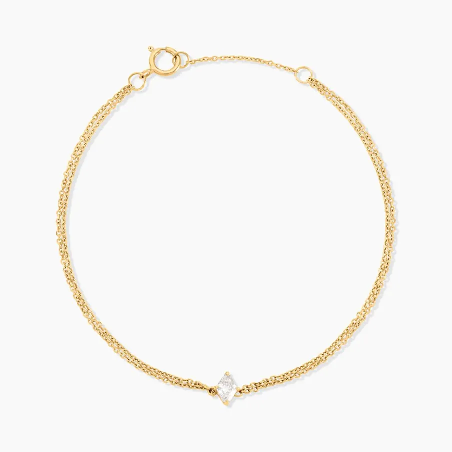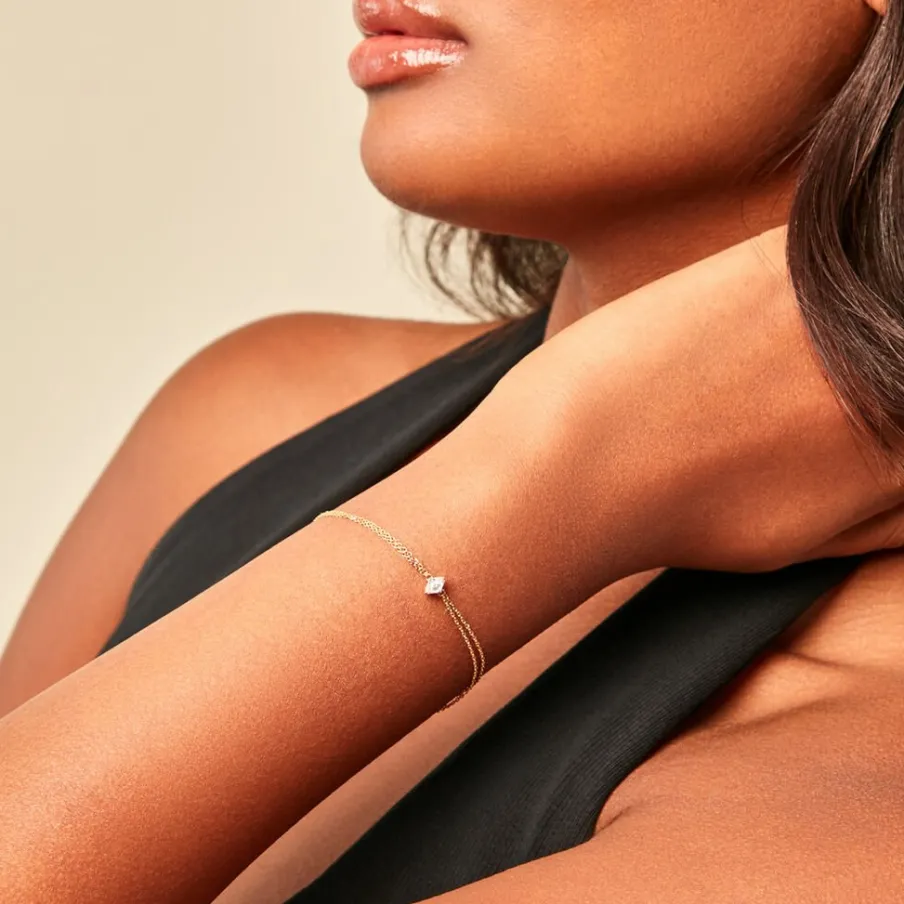 Bracelet Or Jaune 750/1000 Solitaire Losange Diamant Synthetique 0,20Cts Serti Griffes Double Maille Forcat 16+2Cm