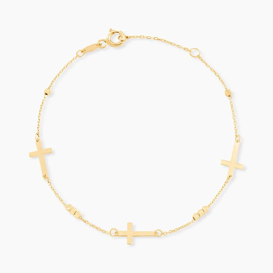 Bracelet Or Jaune 375/1000 Croix Et Maille Fantaisie 16+2cm