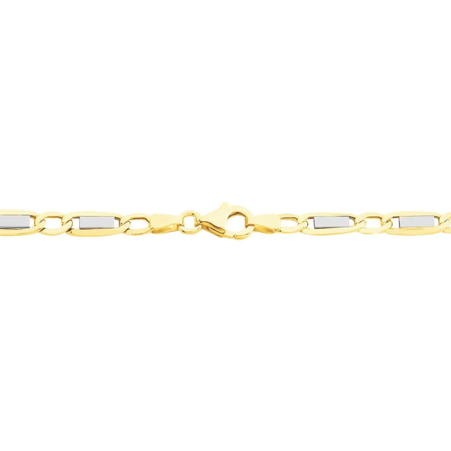 Bracelet Or Bicolore 375/1000 Maille Plaquette Alternée 1/1 4.7mm 21cm