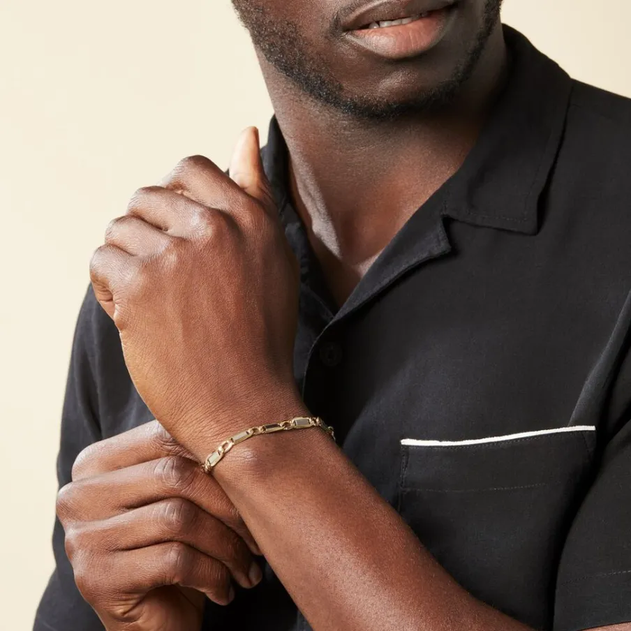 Bracelet Or Bicolore 375/1000 Maille Plaquette 5.6mm 21cm