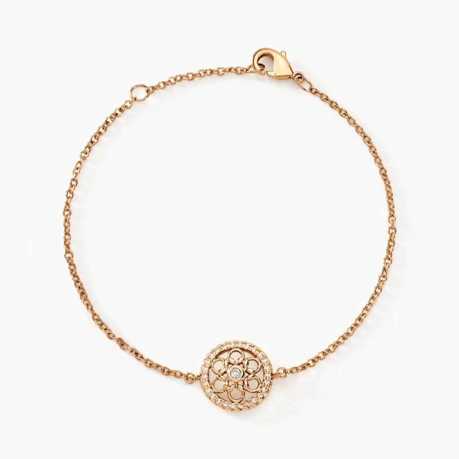 Bracelet Plaqué Or Jaune Rosace Pavage Oxydes De Zirconium Maille Jaseron 16+2cm