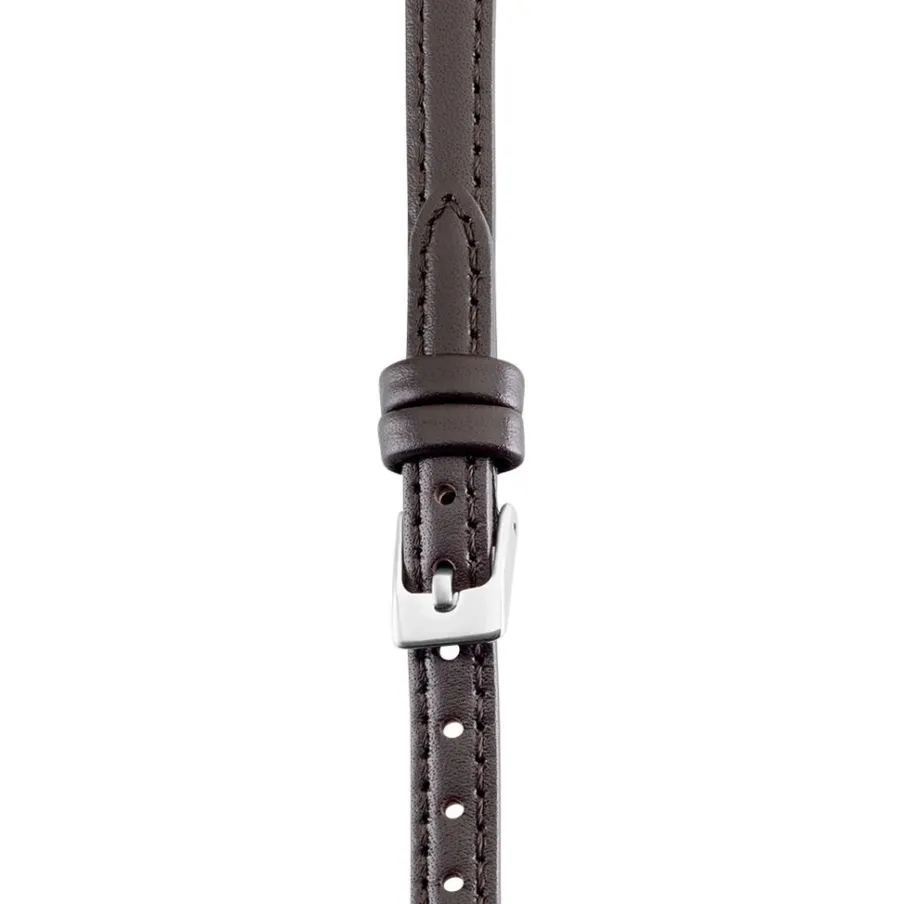 Bracelet De Montre Cuir Lisse Marron Boucle Argentee 10mm