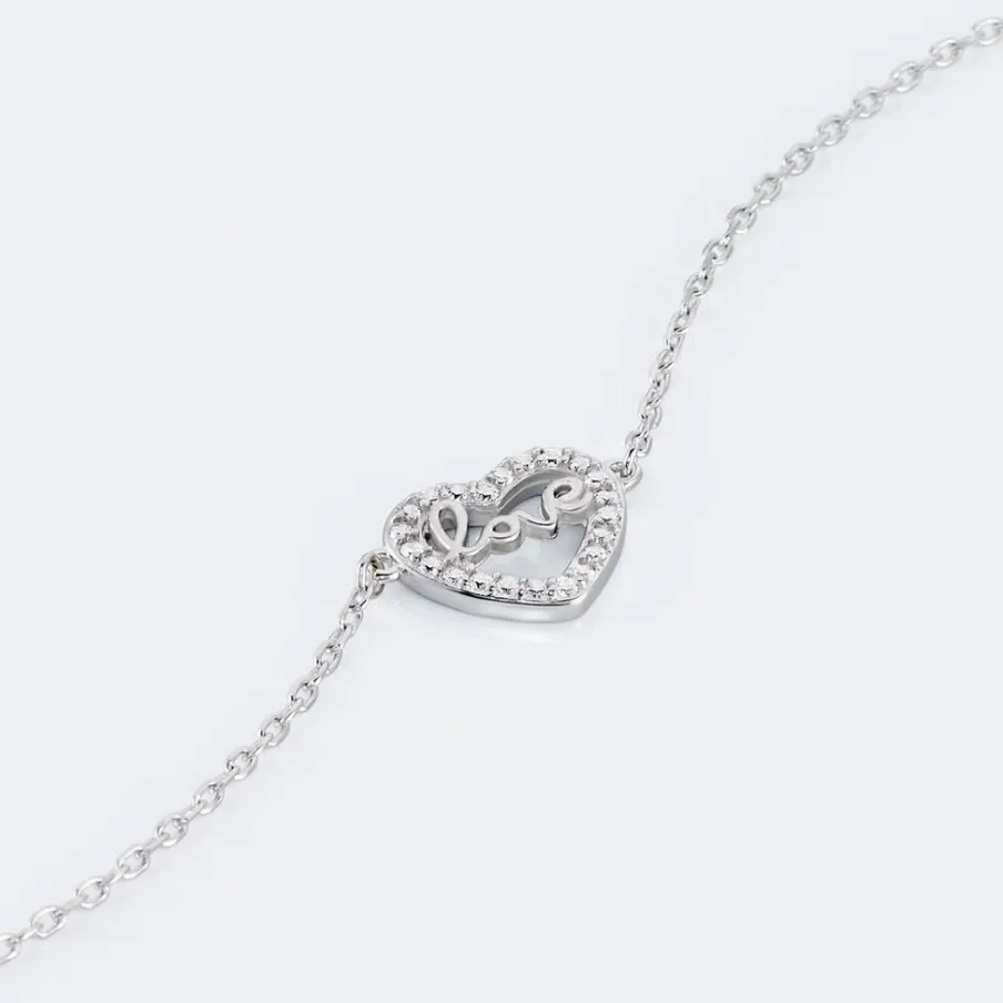 Bracelet Argent 925/1000 delicata Motif C艙ur Pave Oxydes De Zirconium + Ecriture Love 18cm