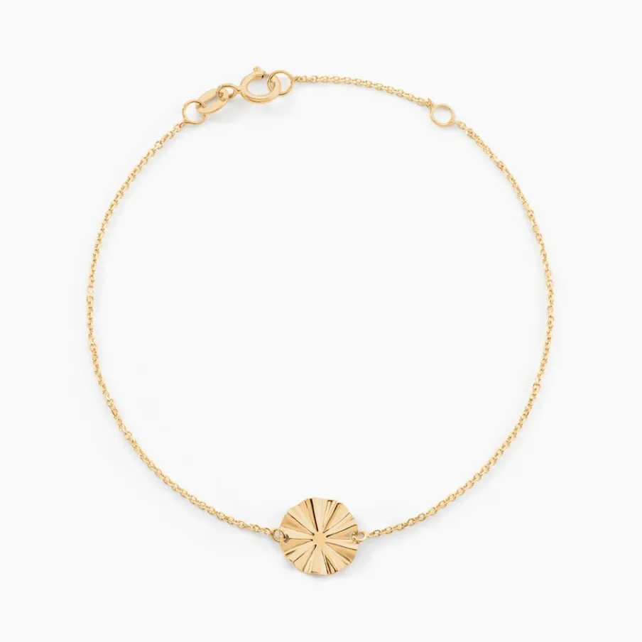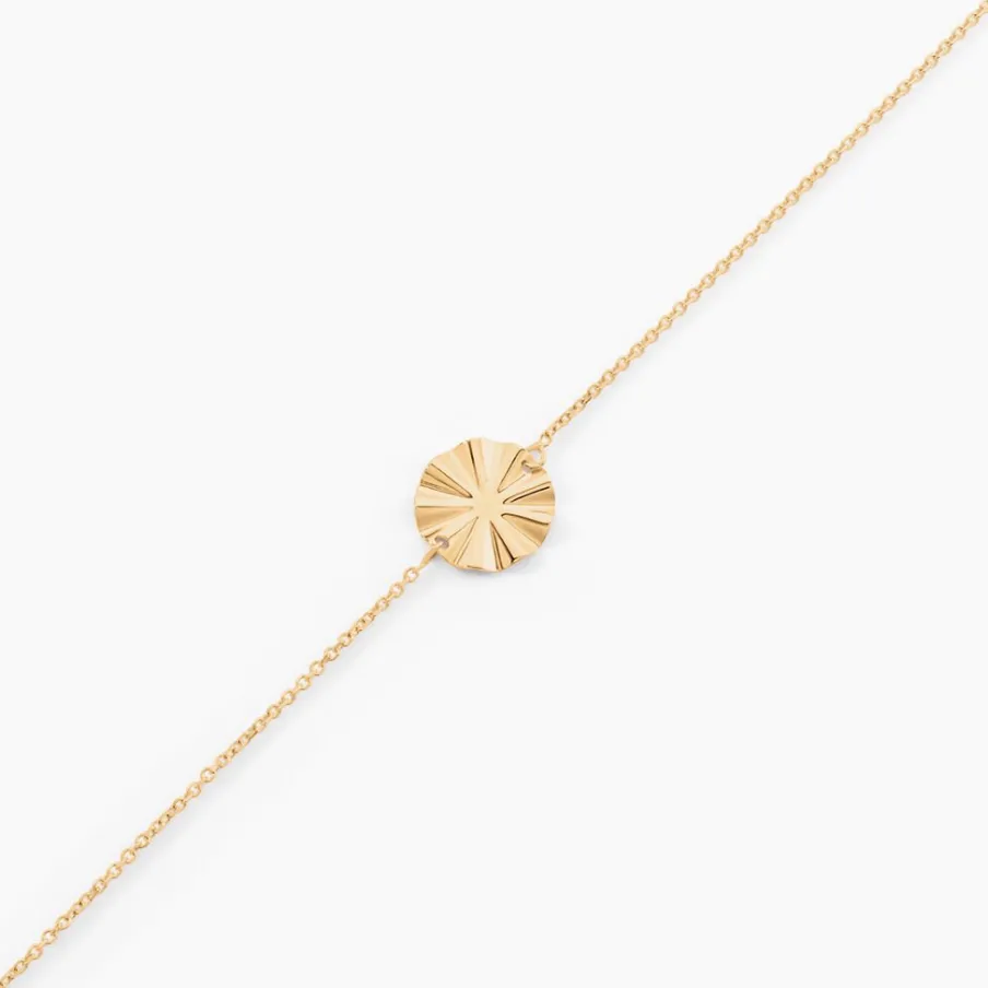 Bracelet Or Jaune 375/1000 Pastille Froissee Maille Jaseron 16+2cm