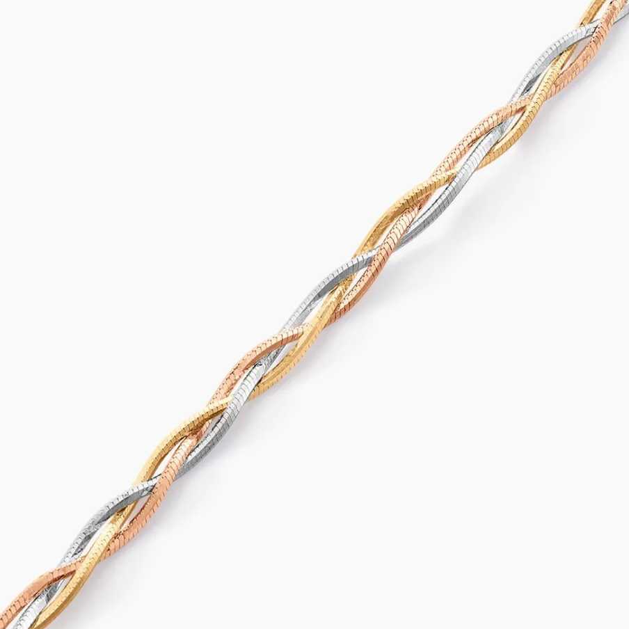 Bracelet Argent Tricolore 925/1000 Maille Tressee 3 Fils Largeur 2.5mm 18cm