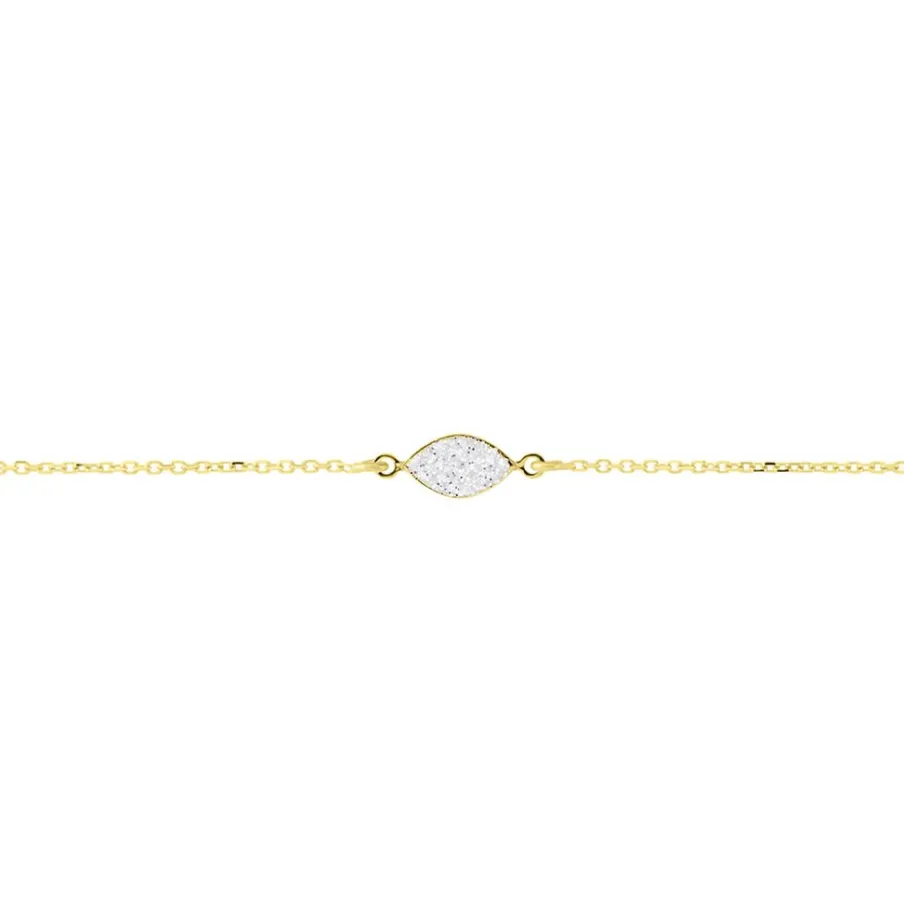 Bracelet Or Jaune 375/1000 Amande Glitter Argente Maille Jaseron 16+2cm
