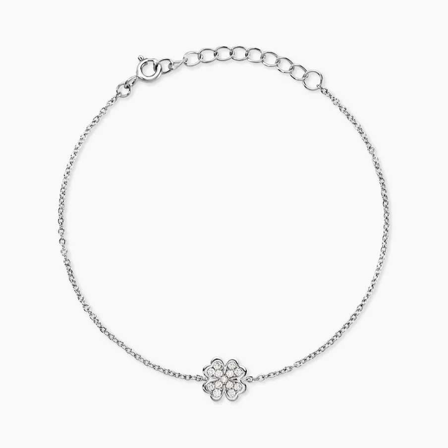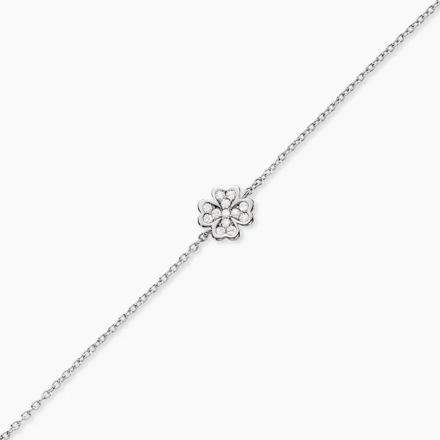 Bracelet Argent 925/1000 fortunata Pavage Oxydes De Zirconium Maille Forcat 16+3cm