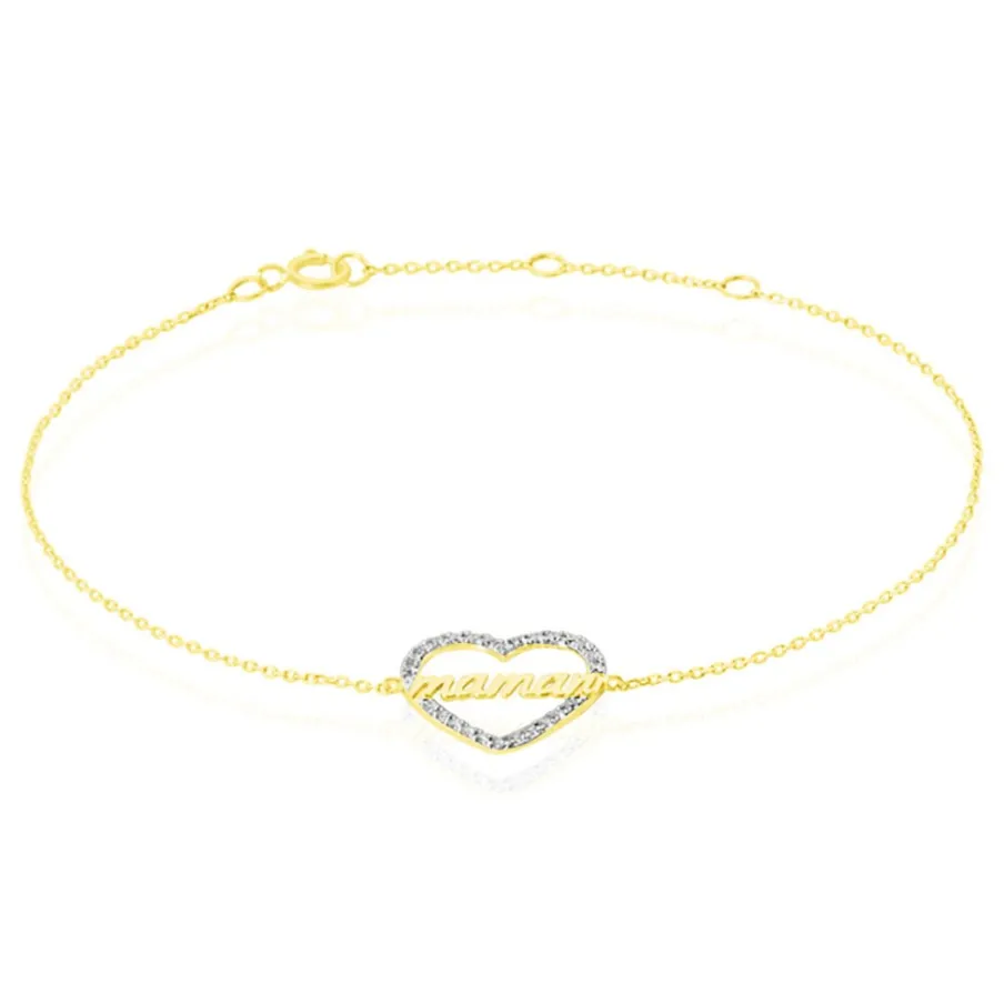Bracelet Or Jaune 375/1000 C艙ur Et Message Maman Oxydes De Zirconium 19cm