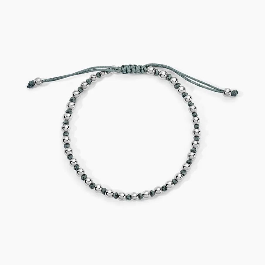 Bracelet Acier Inoxydable Blanc Boules Et Cordon Nylon Gris 18-27Cm