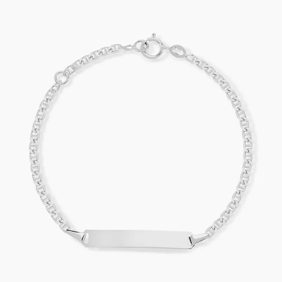 Bracelet Identité Bebe Or Blanc 375/1000 Plaque Rectangle Maille Marine 18cm