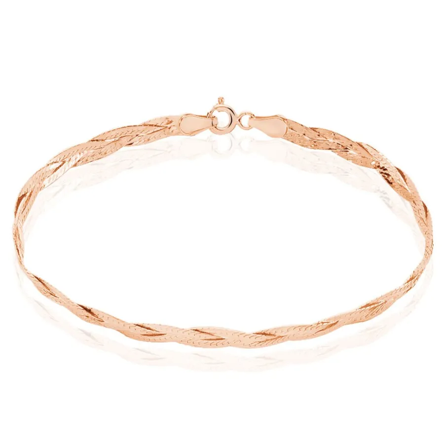 Bracelet Or Rose 375/1000 Maille Tresse 3.6mm 18cm