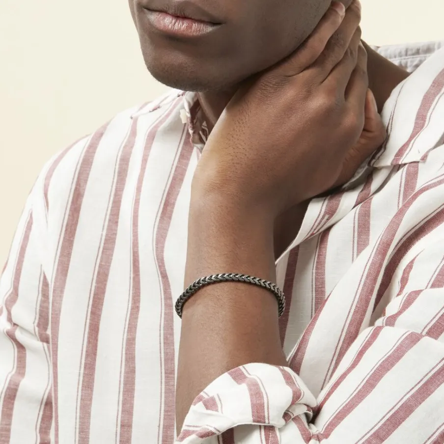 Bracelet Acier Vieilli Maille Palmier Largeur 5mm 21cm